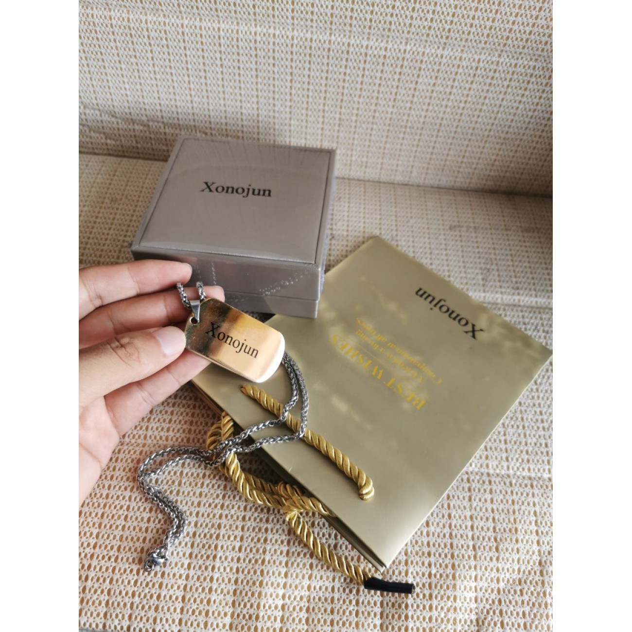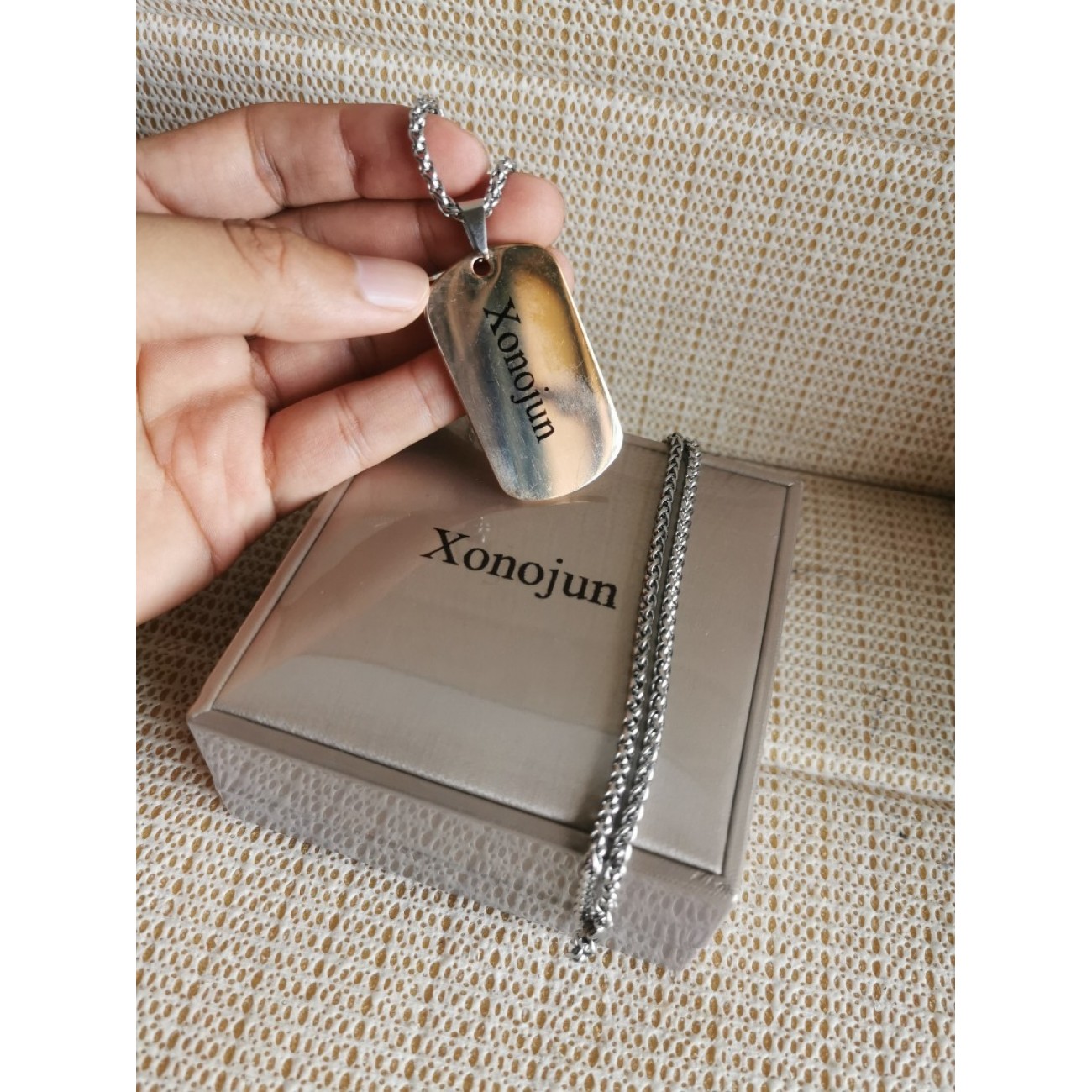 Xonojun Necklace for Men Free Engraving Stainless Steel Dog Tag Pendant Necklace with 24" Chain,Gift for Dad Husband Boy Brother Sister Bestfriend